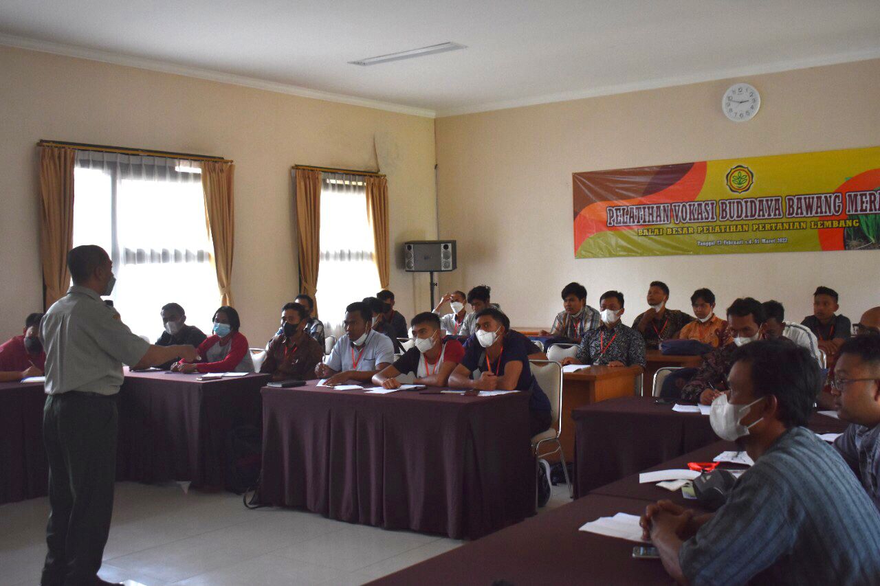 Peningkatan kapasitas SDM pertanian, salah satunya melalui pendidikan dan pelatihan vokasi. Balai Besar Pelatihan Pertanian (BBPP) Lembang melaksanakan Pelatihan Vokasi Budidaya Bawang Merah. Pelatihan dilaksanakan selama 7 hari efektif mulai dari 23 Februari – 1 Maret 2022. Peserta pelatihan berasal dari 17 kabupaten/kota di 3 provinsi yaitu Jawa Barat, Jawa Tengah dan Daerah Istimewa Yogyakarta.