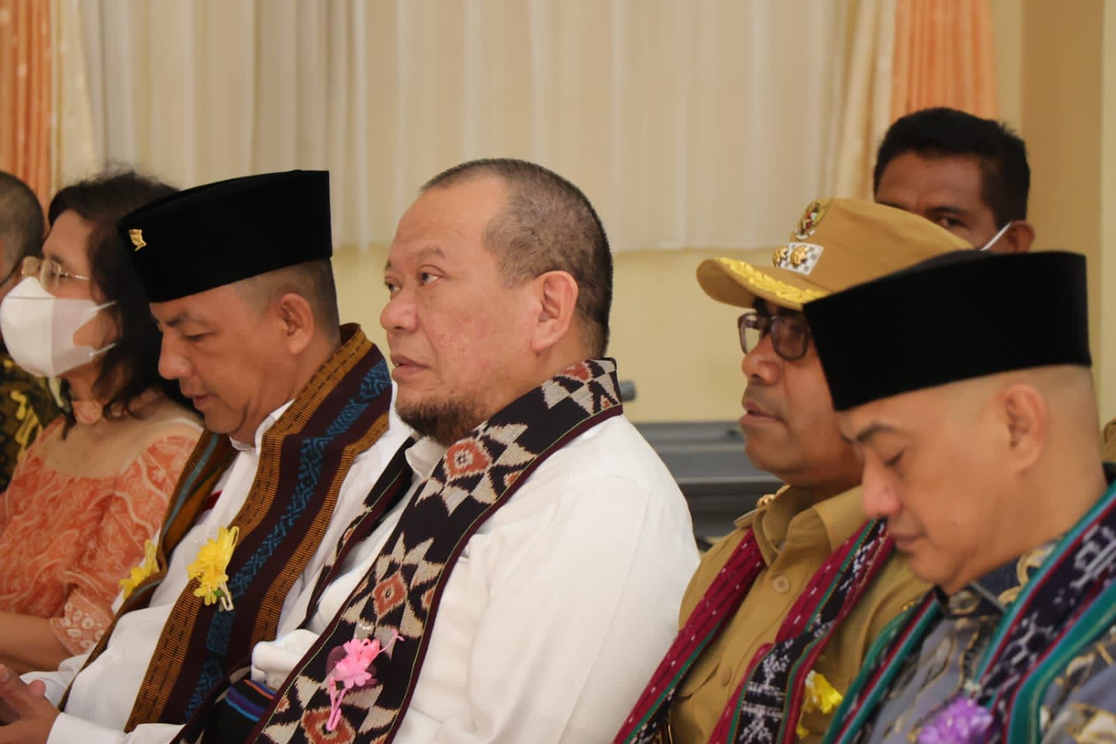 LaNyalla hadir bersama Anggota DPD RI asal NTT Hilda Manefa, Asyera Wundalero, Angelius Wake Kako, Senator Sulsel Andi Muh Ihsan dan Senator Maluku Utara Matheus Stefi Pasimanjaku serta Staf Khusus Ketua DPD RI Sefdin Syaifudin, Kepala Biro Pimpinan DPD RI Sanherif Hutagaol dan Staf Ahli Ketua DPD RI Baso Juherman.