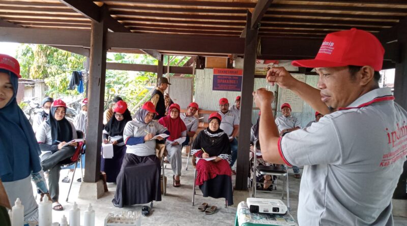 Para peserta sekolah lapang melakukan uji sampel tanah mengunakan PUTS untuk mengetahui tingkat kesuburan tanah di lokasi pelaksanaan kegiatan IPDMIP tahun 2022.