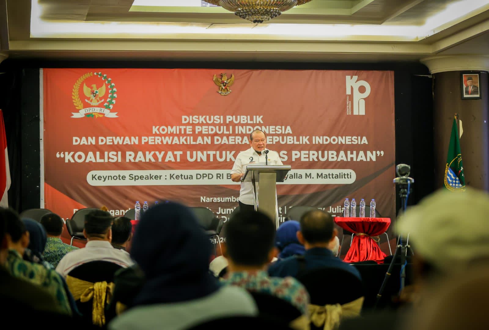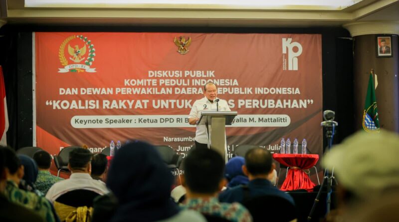 BANDUNG – Ketua DPD RI, AA LaNyalla Mahmud Mattalitti, menyebut tema diskusi publik ‘Koalisi Rakyat untuk Poros Perubahan’ yang digelar Komite Peduli Indonesia di Bandung, Jawa Barat, Minggu (26/6/2022) bisa disingkat menjadi; Rakyat Bersatu Tak Bisa Dikalahkan.
