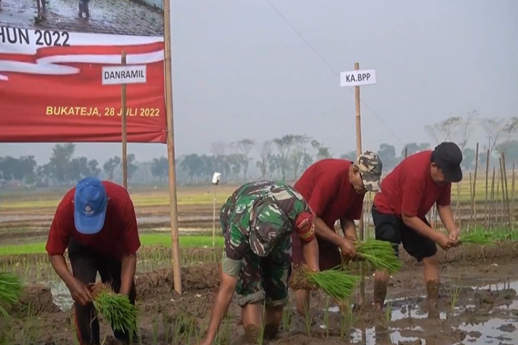 Kegiatan FFD tanam perdana di demplot CSA, juga dihadiri Kapolsek dan Koramil setempat, penyuluh dan petani di wilayah Kecamatan Bukateja.
