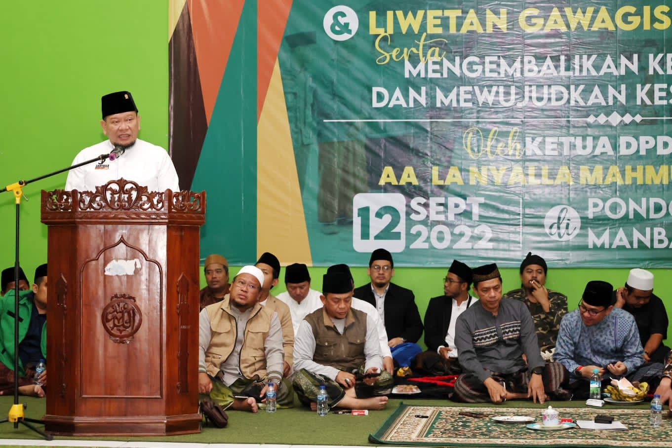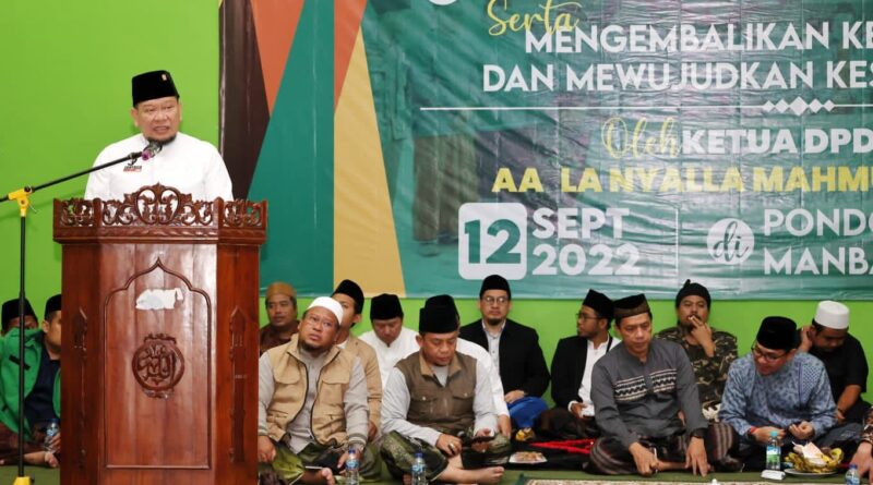 Penekanan tersebut disampaikan LaNyalla saat memberikan orasi di acara Liwetan Gawagis & Ulama Muda Pesantren Pondok Pesantren Mambaul Falah, Kabupaten Bandung, Senin (12/9/2022) malam.