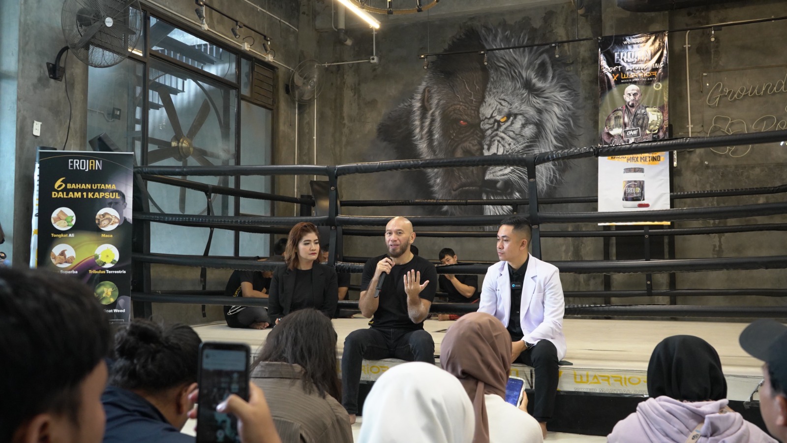 Pembahasan menarik mengenai testosteron dikupas tuntas sekaligus peluncuran Obat tadisional khusus pria, Erojan. Dalam kesempatan yang sama, diskusi santai ini juga dihadiri oleh dokter, nutirisionis, perwakilan dari dealer komunitas pengusaha digital marketing SVO Indonesia (dealer resmi Erojan): Riyard Setioso, Welson Kwik, Jahwan Halim, dan Ahmad Zainal Rauf yang berlokasi di Ground & Pound Café Kelapa Gading, Senin (29/5/2023).