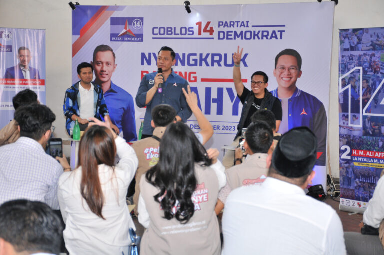 Dukungan ini diungkapkan saat AHY menghadiri acara “Nyangkruk Bareng Mas Andi dan Mas AHY” dengan para milenial, pelaku ekonomi, dan industri kreatif dari Surabaya dan Sidoarjo di Jokopi Dinoyo Surabaya, Selasa (12/12/2023).